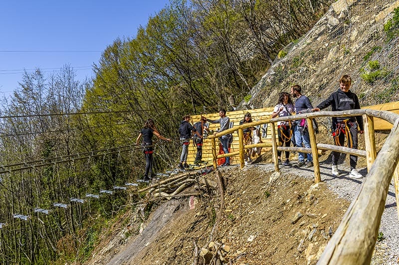 Percorrere il Ponte Tibetano di Dossena è un’esperienza unica. Il Ponte nel Sole è un punto di vista inedito e mozzafiato sui paesaggi suggestivi delle Prealpi Orobiche, con le vette dei monti Grigna, Gioco e Alben, e il fondovalle di San Pellegrino.
