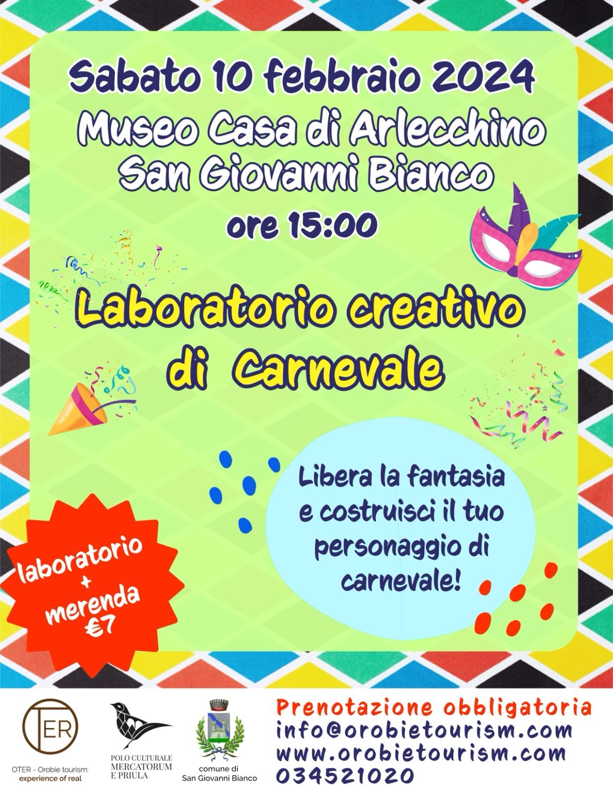 Near Dossena you can also have the opportunity to build your own carnival character at the “Casa di Arlecchino” (Arlequin) Museum in San Giovanni Bianco; unleash your imagination and give vent to your art! The activity will be at 3:00 p.m. on 10th February 2024; the workshop and snacks cost 7 euros and booking is mandatory by writing to info@orobietourism.com | www.orobietourism.com | + 39 034521020